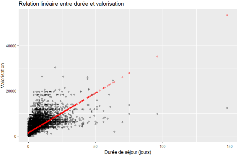 m2 <- lm(valorisation ~ ds, data = sejours)RCe qui signifie :